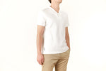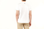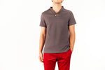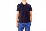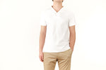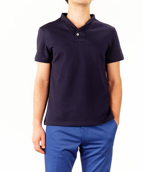 Confectionné dans le même tissu que le polo — et non en maille côtelée — il est entoilé pour assurer une meilleure tenue. Chaque bouton, taillé dans la nacre australienne et gravé, est cousu à la main avec la technique zampa di gallina, pour une finition durable et distinguée.