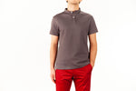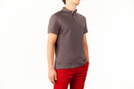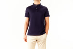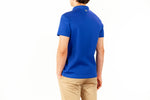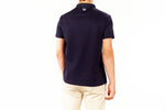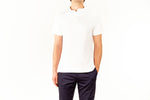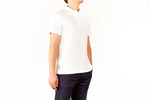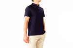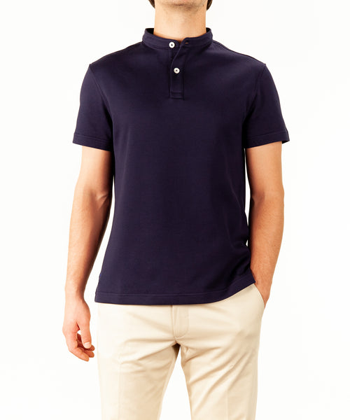 Confectionné dans le même tissu que le polo — et non en maille côtelée — il est entoilé pour assurer une meilleure tenue. Chaque bouton, taillé dans la nacre australienne et gravé, est cousu à la main avec la technique zampa di gallina, pour une finition durable et distinguée.